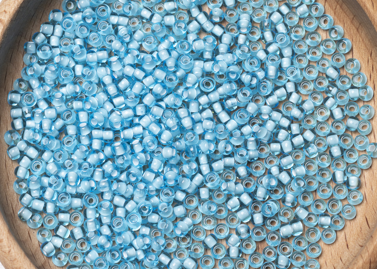 Бисер Чехия круглый 08/0 50 г 65016 прозрачный светло-голубой с белым прокрасом