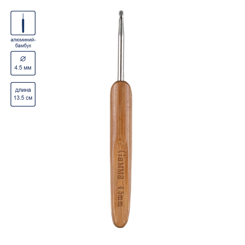 Для вязания " Gamma" RHB крючок с бамбуковой ручкой бамбук алюминий d 4. 5 мм 13. 5 см в блистере .